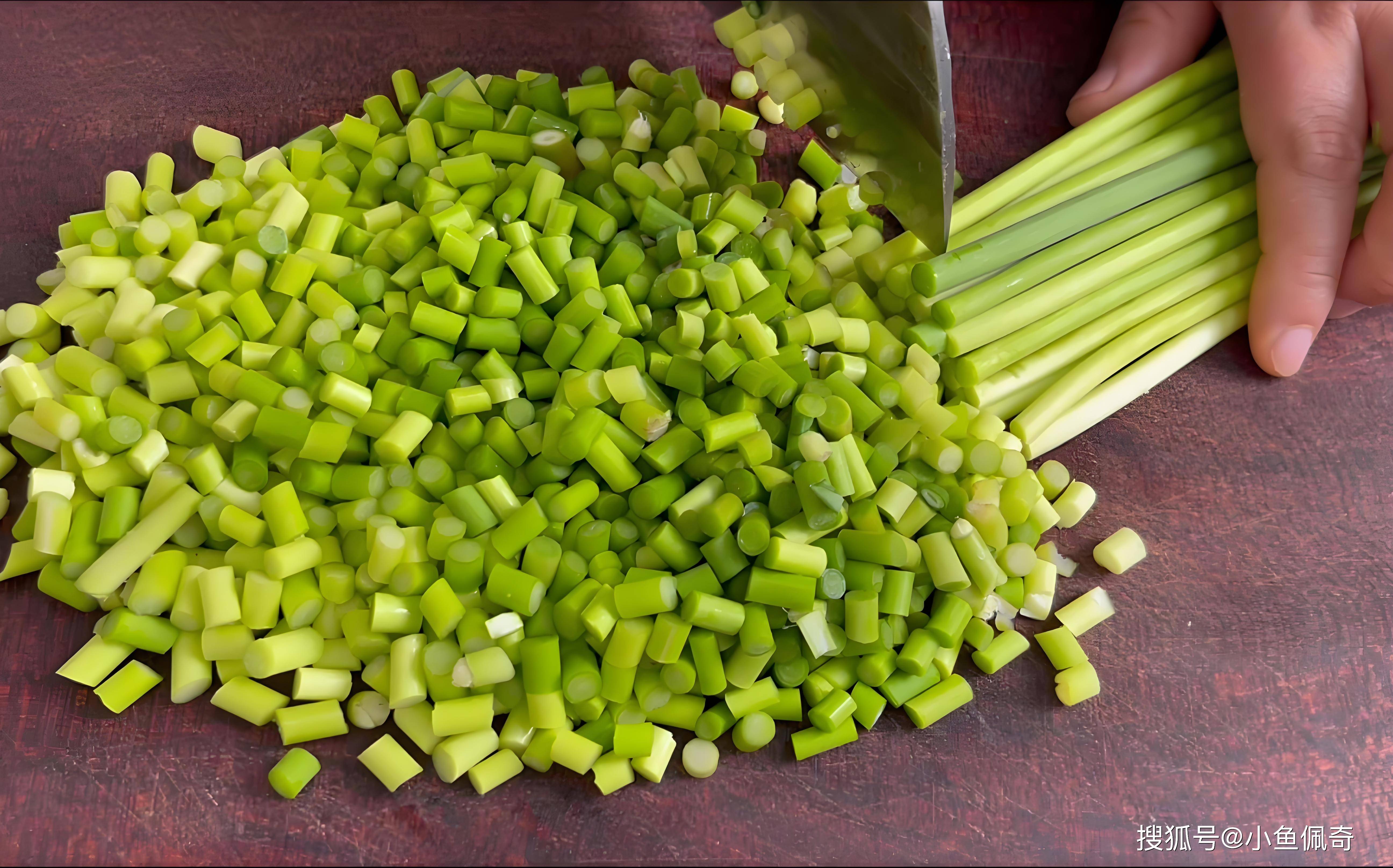 蒜苔处理:新鲜蒜苔不需要焯水,直接切碎即可。这样做既能保持蒜苔的原汁原味,还能减少营养流失。