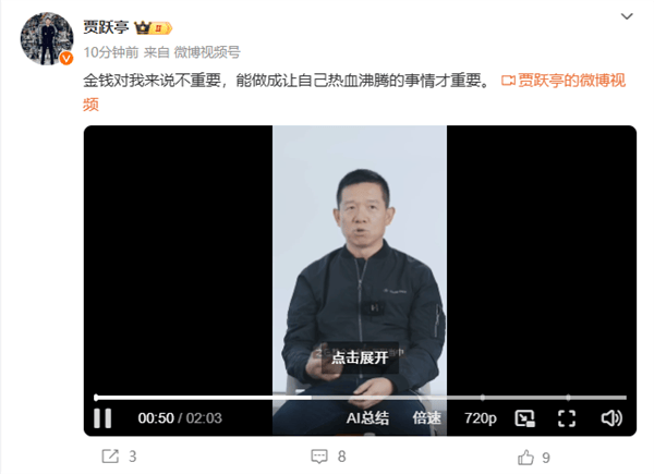 快科技10月25日消息,在最新的视频中,贾跃亭谈到来了自己的金钱观:“金钱对我来说不重要。”