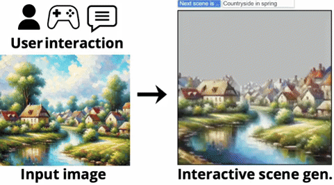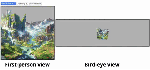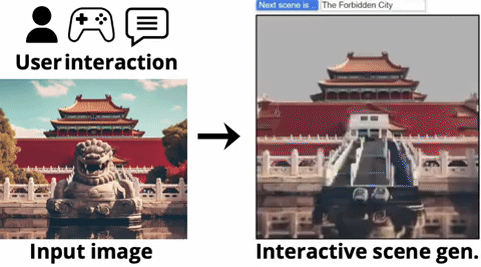 从单一图像出发,在用户的实时交互下生成无限延展的3D场景: