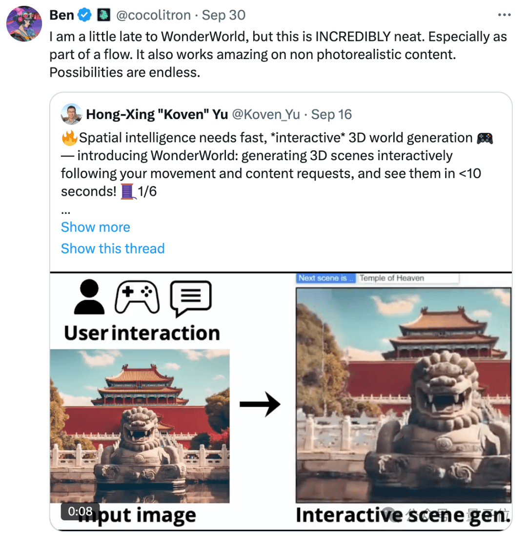 资深游戏创业者,GOAT Gamin的首席AI官兴奋地表示:“它还能对非真实感的图片work。有无限多的可能性!”