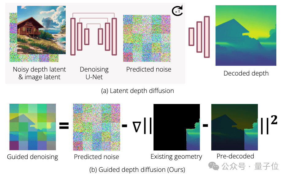 最后,WonderWorld 还针对多个3D场景之间经常出现几何“裂缝”的问题,提出了 Guided depth diffusion。核心想法是,利用已经生成的 3D 场景的深度信息作为 guidance,使新生成场景的深度与其一致。只要新旧场景在连接处的深度一致,那么场景的裂缝就得以弥合。